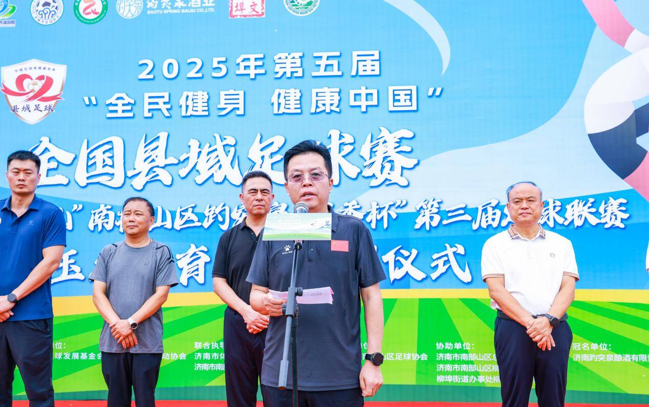 上午9时30分,济南市体育局党组成员、副局长张居忠宣布,2025年第五届‘全民健身 健康中国’全国县域足球赛南山区基层赛暨南山区‘体彩杯’‘趵突泉泉香杯’第三届足球联赛,正式开幕!